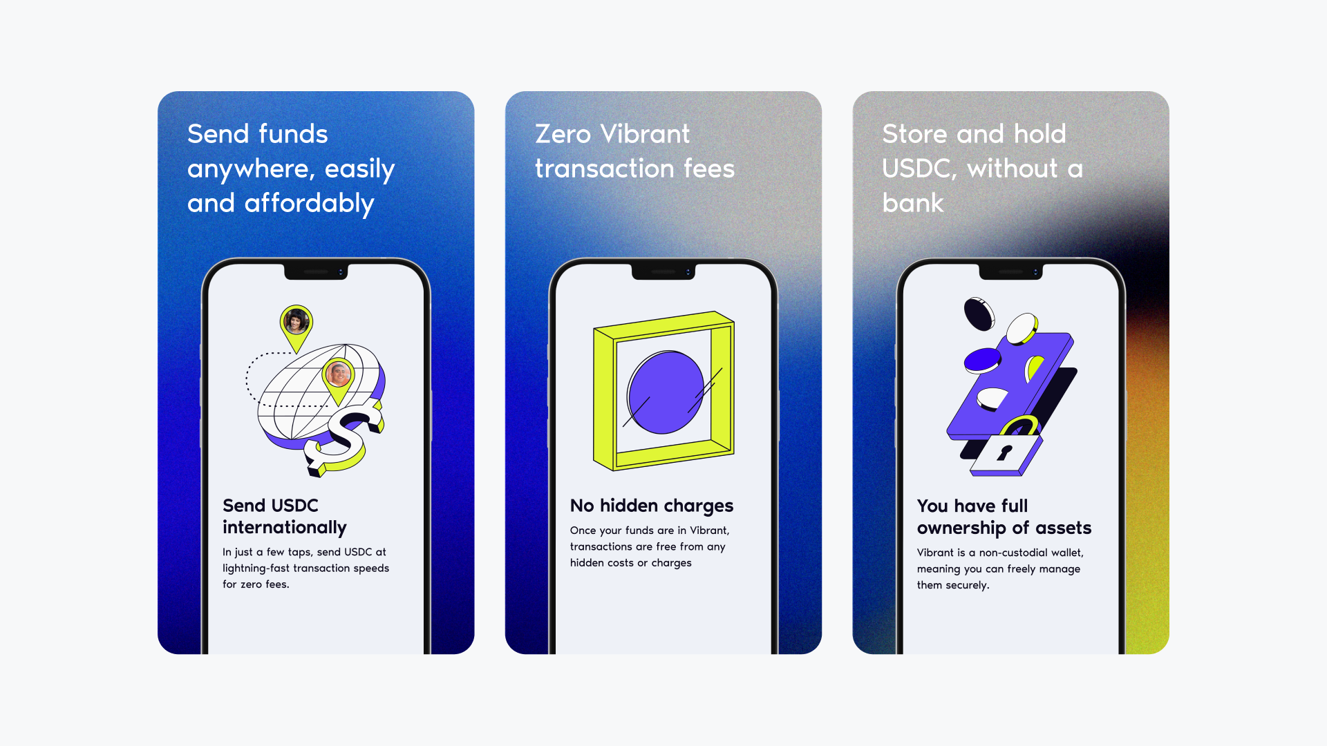 Vibrant launched as a mobile wallet designed to offer financial stability through digital dollars. Argentina was our first market, chosen for its long history of economic volatility and a population in need of more reliable financial tools. We believed blockchain technology could provide a meaningful solution, but our goal was to keep the experience simple and intuitive. Users could save, spend, and earn with USDC, a stable digital dollar, all without needing to understand the technology powering it behind the scenes.